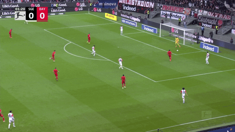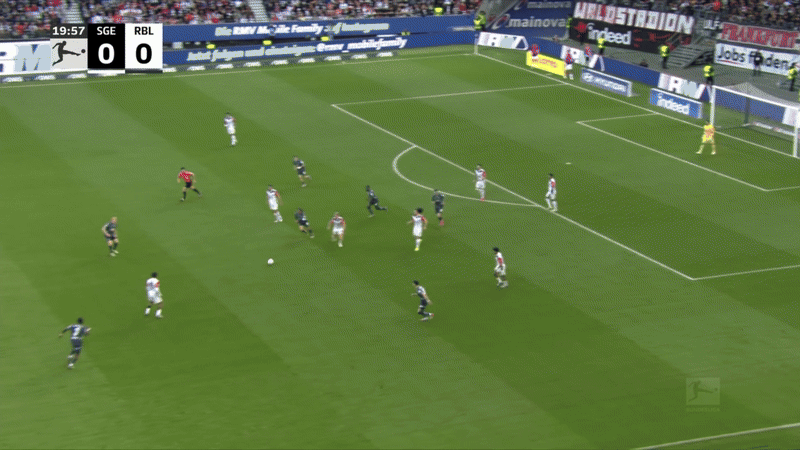 On the defensive side of the ball, Frankfurt were relatively passive. Public metrics which try to quantify how proactive a team is out of possession, such as the average distance of defensive line, passes per defensive actions, or high turnovers generated, had them around middle of the pack. In situations where Frankfurt would try and press the opposition, it mirrored other clubs in the Bundesliga with a major emphasis on man-to-man marking.